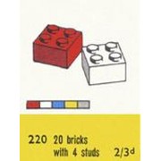 | 22 - 220-1 2 x 2 Bricks Total: 24 sets Year: 1958 Theme: System Ranking # 20377 in total list |